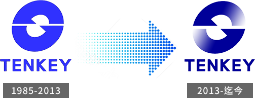 橢圓形意象代表著完美匹配的工況條件;交互旋轉的單向箭頭,代表冷凍循環;水藍色調則象徵著工作介質及新鮮的空氣。方正的TENKEY字樣則是天基對品質堅持的展現。由淺至深的漸層變化,象徵公司持續精進、追求突破的自我期許,也代表著天基30年來從無到有的創立過程。